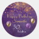 Adesivo Redondo Elegante Roxo Dourado 50 e Feliz Aniversário Fabul