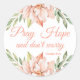 Estes elegantes autocolantes cristãos têm um design floral cor-de-água rosa com um Santo inspirador Padre Pio citação: Reze Esperança e não se preocupe.