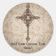 Adesivo Redondo Elegante Scroll Christian Cross w/Swirl Fundo