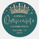 Adicione um toque personalizado a favores de 15 festa de aniversário, decorações, e obrigado notas com adesivos redondos elegantes da Quinceañera. Toda a redação neste modelo é simples de personalizar para selagens de envelopes ou etiquetas de presentes. As cores e os estilos de fonte podem ser facilmente alterados com a ferramenta Editor de Design do Zazzle. A design de ouro verde e rosa apresenta um fundo gradiente chic com bordas escura esmeraldas, uma coroa de princesa de folha falsa, estrelas cintilantes, caligrafia moderna com roteiro de tendências e elegante tipografia clássica. Observe que o ouro rosa é impresso a cores, não em folhas metálicas. Estas etiquetas acrescentam um toque na moda único à celebração especial de Mis Quince Años de uma adolescente. Feliz Cumpleaños quinceanera! Feliz 15 anos!