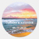 Belo, pôr do sol, verão, adesivos tropicais de casamento. Costeiro, clássico, vinheta redonda oceânica.