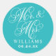 Adesivo Redondo Elegante Teal, Sr. e Sra. Script, Monograma Person