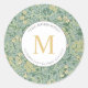 Adesivo Redondo Elegante Verde Floral Dourado Monograma Endereço d
