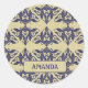 Adesivo Redondo Elegante vintage damask marinho Monograma amarelo