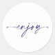 Adicione um toque final encantador aos seus favores de casamento com este elegante adesivo redondo com a palavra "desfrutar" em um roteiro de marinho fluente em um fundo branco limpo. Ideal para selar caixas de tratamento, favoritos para festas de decoração ou aprimorar presentes de obrigado em casamentos, chás de panela ou festas de noivado.