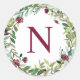 Adesivo Redondo Elegante Winter Greenery Burgundy Monograma Wreath