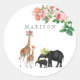 Adesivo Redondo Elephant & Giraffe Floral Nome Personalizado