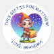 Bela animação de Natal do Chibi segurando um presente na neve personalizado de e para as etiquetas de presentes.