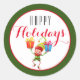 Adesivo Redondo Elfo Bonito com presentes Feliz Feriado/Verde