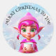 Adesivo Redondo Elfo rosa e bonito com café ou cacau