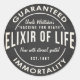 Uma etiqueta de poção de estilo vintage para o elixir da vida com texto de giz branco sobre um fundo texturizado de quadro negro. Este é concebido para ser utilizado para rotular um cocktail ou decorações numa festa de Halloween ou qualquer outro evento temático assustador. Você pode personalizar o nome, o slogan e a data para combinar seu coquetel ou lanche, por exemplo, substituindo "vacina para a morte" por "sabor a banana" ou mudando a "EST 1867" para a data do seu partido.