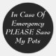 Adesivo Redondo Em Caso De Emergência, Salve Meus Pets