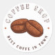 Este adesivo foi projetado para promover o compro do café e seus serviços de café expresso. Ele apresenta uma forma redonda clássica e um design único que se destacará e chamará a atenção.