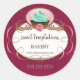 © Socialite Design Inc. Adesivo de cupcake de gelo da horta charmoso com design magenta de fundo. Perfeito para selar caixas de padaria e adicionar um toque delicioso para promover seu negócio de panificação!
