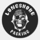 Crânio beco escuro, em boné crânio e adesivo, com "Embalagem Longshore" em letras góticas. A maldade do zombie-empacotador-malace, desenho original. T-shirts, suores, botões, autocolantes, presentes.