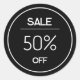 Esses adesivos negros mínimos são personalizáveis. Você pode editar a porcentagem como quiser. O estilo preto minimalista é mais adequado quando você tem uma marca já existente, mas precisa de adesivos de vendas.