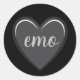 Este adesivo cardíaco preto e cinza clássico apresenta o emo de texto no centro. Você pode personalizar isso para torná-lo seu. O design é simples e sofisticado.