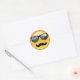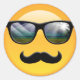 Este design de adesivo apresenta um emoji original chamado 'Super Shady' que está vestindo óculos de sol brilhantes e reflexivos e um grande 'bigode' preto. Talvez ele seja detetive ou agente disfarçado, mas ele definitivamente está escondendo algo. Se você olhar de perto, verá a praia e uma palmeira refletidas em seus tons. Procure ID230 para ver outros produtos com este design.