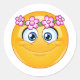 Adesivo Redondo Emoticon Vestindo Uma Fraqueia Floral
