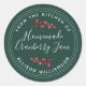 Compota de Natal russa e moderna enlatando vinheta de framboesa com o texto da cozinha, compota de morango caseira e seu nome na caligrafia de guião branca e tipografia moderna em um fundo verde escuro com um toque de na moda de amoras. Basta adicionar seu nome e o nome do produto à etiqueta. Desenvolvido exclusivamente para você pelo Happy Dolphin Studio. Se precisar de ajuda ou produtos correspondentes, entre em contato conosco em happydolphinstudio@outlook.com.