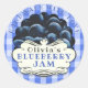 Gingham scollop design com mirtilos. Todo texto é personalizável. Pode ser usado para vários tipos de mercadorias de mirtilo. Ideal para negócios profissionais ou para alguém que apenas ama preparar comidas para a família e amigos. Também disponível em cereja, morango, framboesa, damasco e marmelada de laranja.