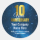 Um adesivo ousado e marcante do 10º aniversário para comemorar 10 anos de negócios. Este adesivo especial da empresa marco consiste no 'aniversário de 10 anos' da tipografia em um fundo azul. Adicione um nome de empresa e uma mensagem.