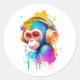 Macaco sem saída! Mergulhe em um mundo onde macacos fazem fones de ouvido, macacos giram rastros, e a criatividade não conhece limites. Mistura uma vibrante arte aquosa com as legal vibrações da cultura DJ. O ritmo oficial do negócio dos macacos.