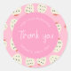 Adesivo Redondo Encapsulamento "Obrigado" com padrão de morango