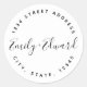 Etiquetas de endereços circulares de retorno personalizadas com casal/noiva personalizado e nomes de noivo na caligrafia manual moderna. Excelente para decorar envelopes de casamento, presentes, favores, novos anúncios de casa, e muito mais!