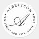 Etiquetas/adesivos de endereço de retorno circular, concebidos por medida, com design de monograma elegante e clássico. Personalize com o nome inicial, a família e o endereço. Perfeito para decorar envelopes, cartas, presentes de faça-você-mesmo e muito mais!