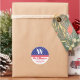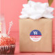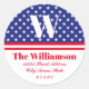 Adesivo Redondo Clássico Endereço da Família Listras e Estrelas Vermelho Branco Azul