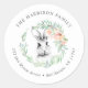 Rótulos de endereço de feriado de Páscoa do círculo personalizado do barato. Este primavera bonitinho apresenta uma ilustração de coelho doce em um rabo floral de cor d'água. Use as ferramentas de design para adicionar seu próprio texto e fotos para criar um rótulo de endereço de retorno, selo de envelope ou etiquetas de presentes de Páscoa.