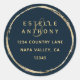 Este adesivo de endereço de retorno apresenta uma estrutura falsa em círculo dourado com uma elegante e uma caligrafia simples com fundo azul marinho.