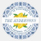 Adesivo Redondo Endereço de devolução de casamento do Azulejo azul