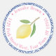 Este design de adesivo flexível apresenta um limão aquarela com folhas contra um fundo de azulejos azuis e brancos, com uma borda de texto circular rosa. Mostrado aqui para um adesivo de endereço de devolução, mas todos os campos de texto são flexíveis às suas necessidades.