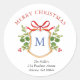 Elegante e personalizado adesivos de férias com Crest Aquarela pintada manualmente com verde de inverno com seu Monograma no centro. Personalize usando as caixas "Editar este modelo de design" no lado direito do item ou clique no botão azul "Personalizar" para organizar o texto, alterar as fontes e as cores.