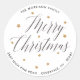 Vestir seus envelopes de Natal ou pacotes com este adesivo festivo com as palavras "Feliz Natal" em um belo manto rodeado por estrelas ouros. Adicione seu nome, endereço ou texto personalizado para personalizar. Festivo e elegante, mas simples e clássico - perfeito para os feriados