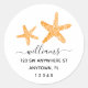 Um moderno peixe-estrela-laranja personalizado retorna adesivos redondos. Este rótulo de endereço personalizado apresenta uma fonte elegante de script de caligrafia e duas estrelas.