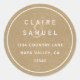 Um adesivo de endereço de volta de casamento simples e russo em um fundo falso de papel kraft castanho com roteiro branco.