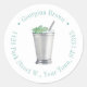 Este design flexível adesivo apresenta um coquetel de menta aquosa pintado manualmente em seu béquer metálico, com borda circular de texto. Mostrado aqui para uma etiqueta de endereço de retorno, mas todos os campos de texto são flexíveis para suas necessidades. Por exemplo, pode ser um obrigado que você favorece o adesivo.