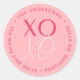 Etiqueta de endereço de retorno do Dia de os namorados moderno com XOXO mostrada no centro do design em letras escuras cor-de-rosa e brancas com uma cor de fundo da rosa claro. Personalize as etiquetas de endereço de retorno XOXO com seu nome de família e endereço em letras escuras cor-de-rosa.