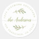 Chic, moderno e simples nome de família retorna o endereço clássico de adesivo redondo com seu nome de família em caligrafia elegante manuscrita verde num fundo branco com um toque de na moda de folhagem de pinheiro. Basta adicionar seu nome e endereço. Desenvolvido exclusivamente para você pelo Happy Dolphin Studio. Se precisar de ajuda ou produtos correspondentes, entre em contato conosco em happydolphinstudio@outlook.com. Estamos felizes em ajudá-lo a fazer seu casamento o dia mais bonito!