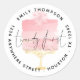 Endereço de Devolução do Nome da rua do Script 21 do Bolo Rosa Moderno. Vinte Primeiros estão centrados em um estilo fixo de escrita manual com o nome do remetente curvo acima e o endereço de retorno curvo abaixo, sobreposto a um bonito bolo rosa pálido ao fundo em um suporte de ouro e uma flor em cima.