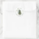 Etiqueta de endereço de retorno redondo perfeita para cartões de natal. Pinheiros de aquarelas e uma paleta verde.