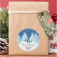 Paleta de cores azul marinho e branco. Selo de envelope de endereço de devolução redondo com seu monograma, nome e endereço. Perfeito para adicionar um toque decorativo e selar envelopes para convites de casamento e festas de chá de panela. Pintura à mão em aquarela de uma forte nevasca na floresta à noite pintada pela artista Audrey Jeanne Roberts. Direitos autorais.