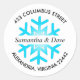 Um adesivo de endereço redondo personalizado embelezado com um floco de neve azul ao redor do(s) seu(s) nome(s). Insira seus nomes e endereços no lugar do texto de exemplo mostrado no modelo de design.