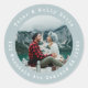 Um simples modelo de adesivo redondo de endereço de devolução de foto em azul cinza, que você pode facilmente atualizar com seu nome endereço e foto personalizada!