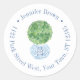 Este design flexível apresenta um topiário clássico de bola de madeira de boxe em uma plantação de jarro de gengibre cercada por uma borda circular de texto. Mostrado aqui para uma etiqueta de endereço de retorno, mas todos os campos de texto são flexíveis para suas necessidades. Por exemplo, pode ser um obrigado que você favorece o adesivo.