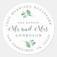 Chic, moderno e simples retorno de casamentos discursam um adesivo redondo clássico com o texto do futuro Sr. e Sra. em um roteiro elegante fora de preto sobre um fundo branco e um toque de folhagem verde de eucalipto. Basta adicionar seu nome e endereço. Desenvolvido exclusivamente para você pelo Happy Dolphin Studio. Se precisar de ajuda ou produtos correspondentes, entre em contato conosco em happydolphinstudio@outlook.com. Estamos felizes em ajudá-lo a fazer seu casamento o dia mais bonito!
