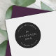 Adesivo Redondo Clássico com Nome da Família e Endereço de Retorno apresenta o sobrenome e endereço da sua família em branco sobre um fundo preto. Confira os itens de casamento correspondentes https://www.zazzle.com/collections/119930609931325936